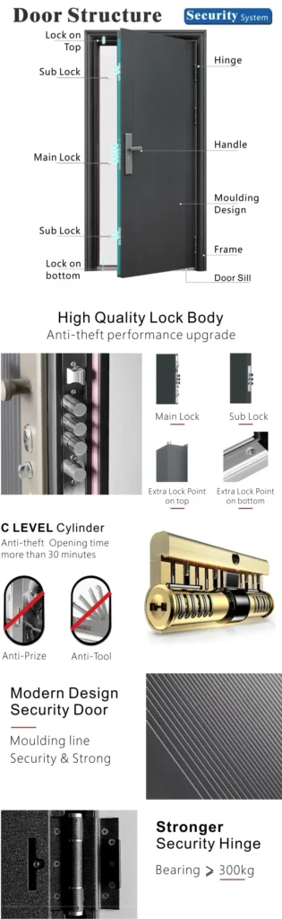 At Catiny Doors, one of the best steel door brands, we manufacture and supply high-quality steel doors designed for enhanced security, strength, and sophisticated design. Our doors are trusted worldwide for their performance in diverse applications—from fire-rated steel doors for safety compliance, to explosion-proof doors for industrial environments, and luxury steel villa doors for high-end residential projects.